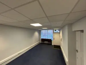 29 Denmark Street offers an open plan sales space with a bright single glazed retail frontage. The floors have been carpeted, and the walls are painted and plastered. The property benefits from suspended LED panelled lighting.
