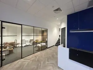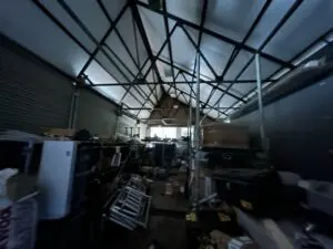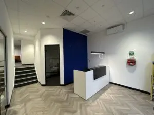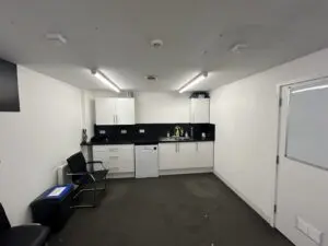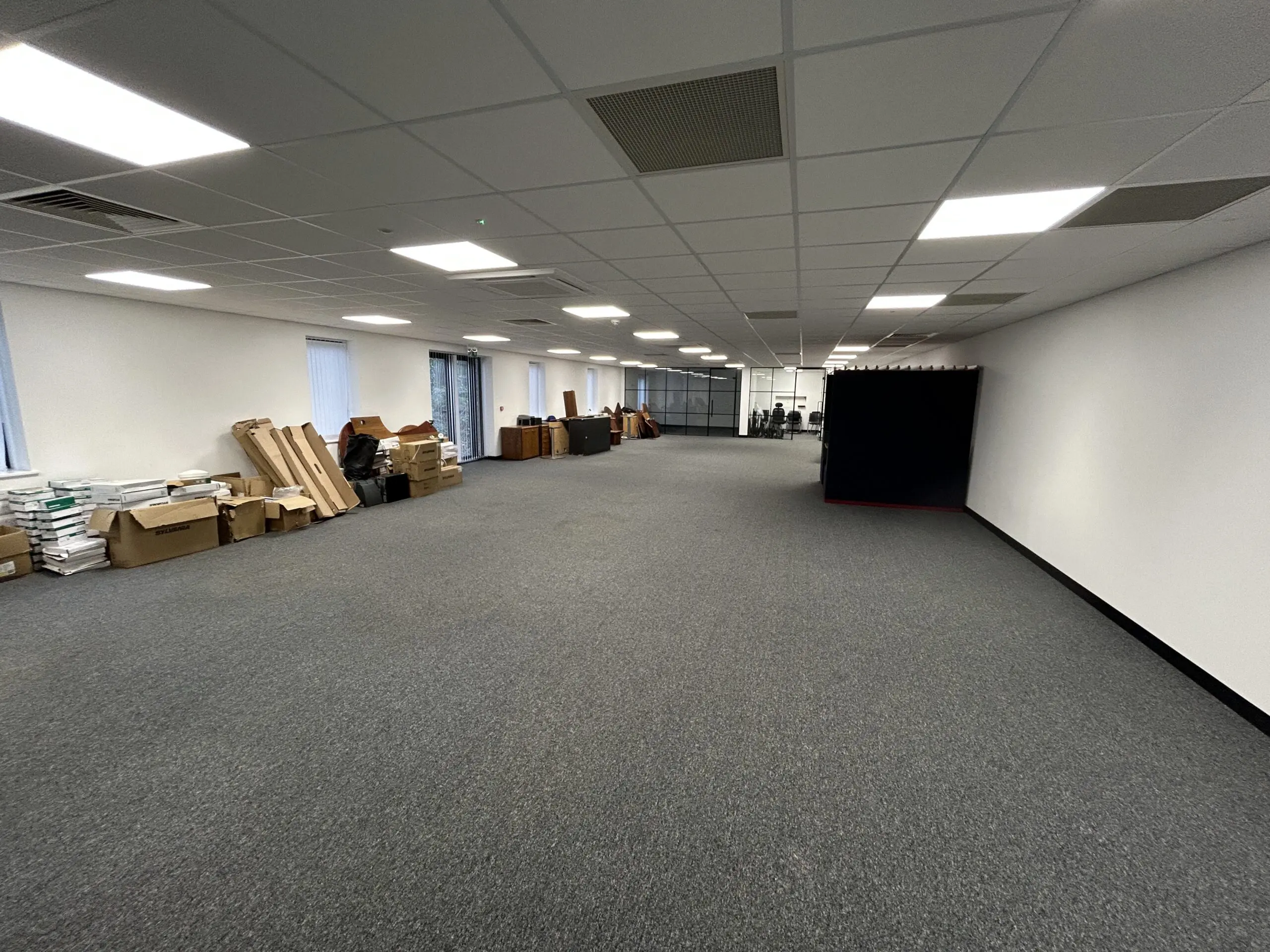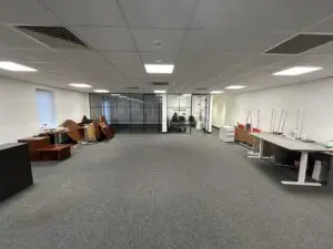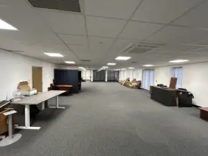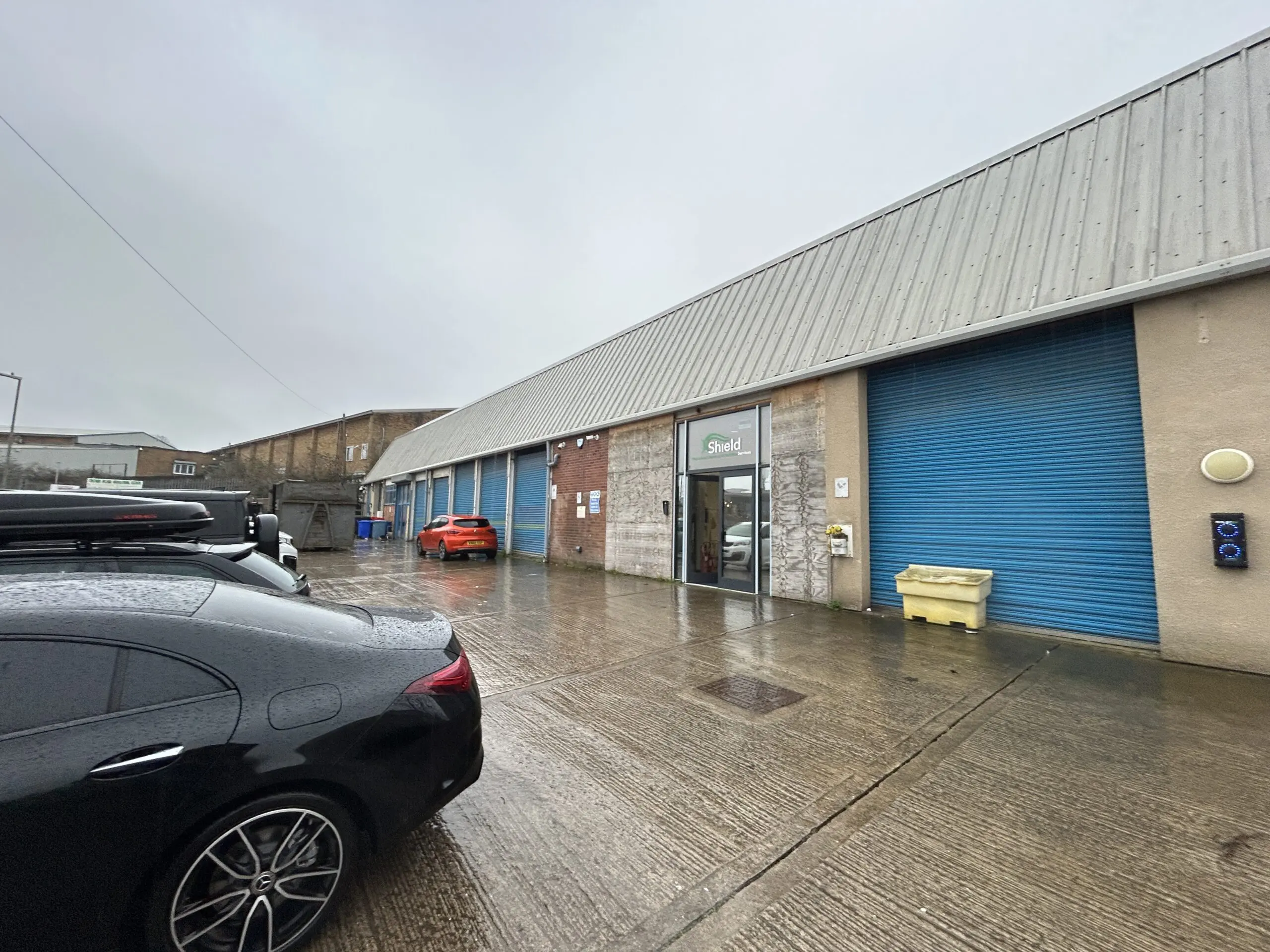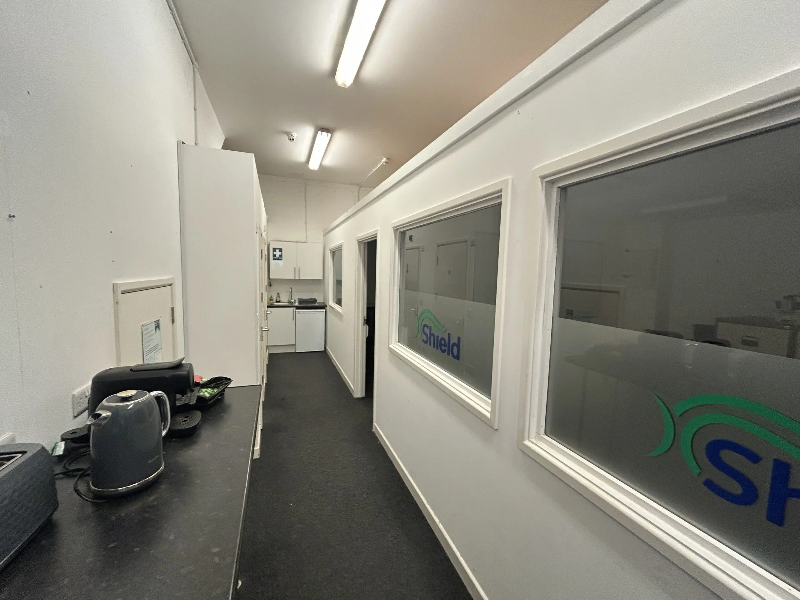 Internally, the unit provides a hybrid space with office accommodation and warehouse space. There is a large storage area to the front of the unit with 5 roller shutter doors providing access. To the rear of the property is a large open plan office area, kitchenette and WCs. At each end of the unit there are two self contained areas providing warehouse space at ground floor level and offices at first floor level, these have their own roller shutter access and pedestrian access doors, WCs and Kitchenettes.