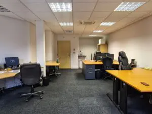 Suite K01 provides a modern, open plan accommodation benefitting from a kitchenette, a W.C, suspended ceilings with LED lighting, carpet and laminate flooring, perimeter trunking, double glazed aluminium windows, air conditioning and a fully glazed frontage.