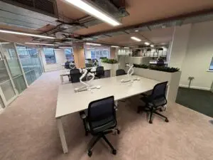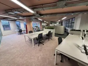 The available space is located on the first floor and provides a self contained, open plan suite of approx 2,854 sq ft finished to a high and contemporary standard. The suite benefits from a fitted kitchenette, floor boxes, exposed VRV cooling / heating system and LED lighting. There is also a passenger lift in the building. In addition to this, the tenant will have access to the communal WC, showers, lockers, ample bike storage and drying room.